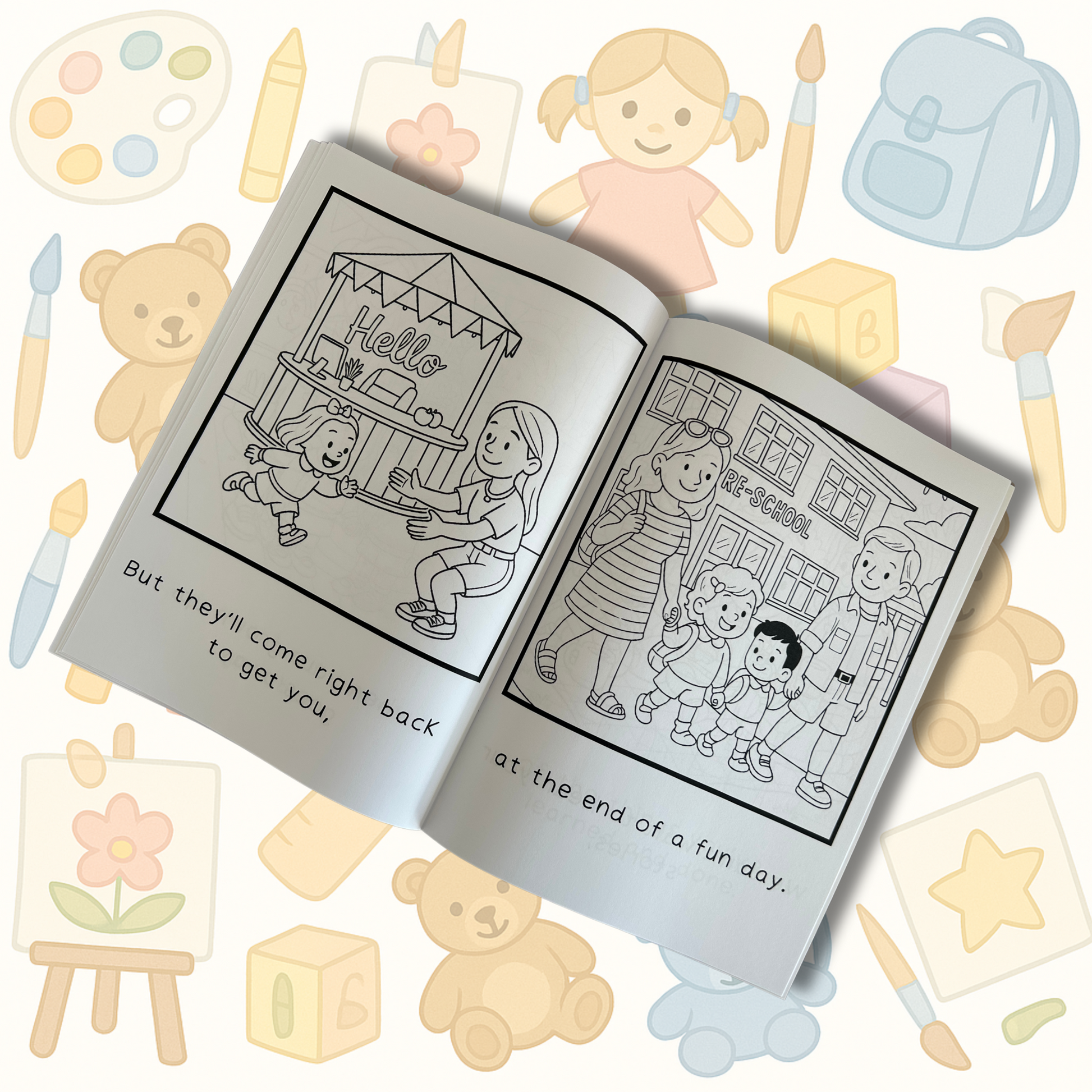- 📘 The Picture Book – A warm, rhyming picture book that gently walks children through what to expect at pre-school. With soft pastel illustrations and age-appropriate language, it encourages early reading practice and prepares and excites them for this new chapter.